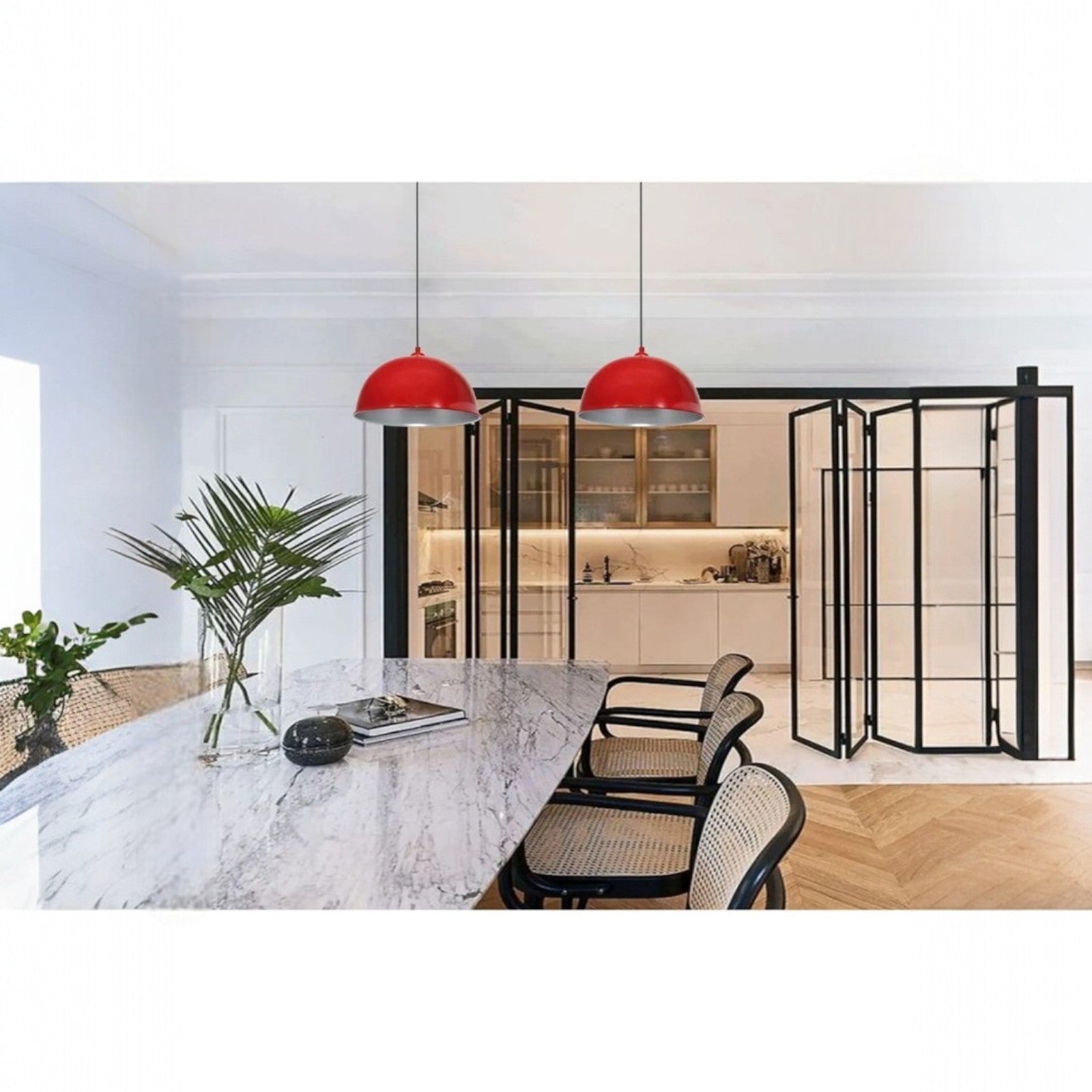 Material und Farbe: Material: Die Pendelleuchte für den Esstisch ist aus Metall. Der Durchmesser beträgt 30 cm und die Höhe der Küchenlampe beträgt 30 cm. Technische...
