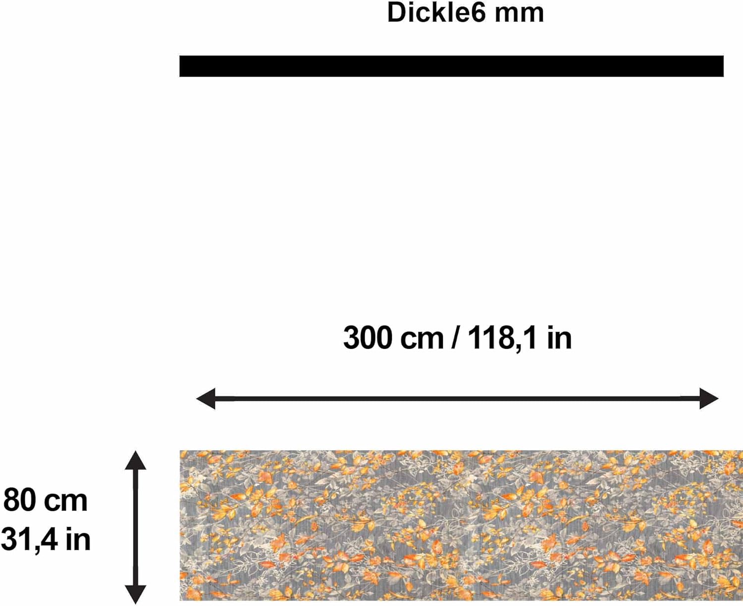 Maschinell gefertigter Teppich mit Chenille-Druck: Dieser Teppichläufer für den Flur ist ein maschinell bedruckter Chenille-Teppich, der auf jedem Untergrund verwendet werden kann und leicht zu reinigen ist. Die Oberseite des Teppichläufers besteht aus Chenille, die Unterseite aus 100 % Baumwolle.